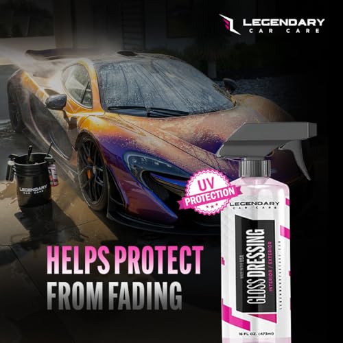 Legendary Gloss Dressing with Applicator 16oz – Tire Shine Spray & Plastic Restorer – Water Based & Non-Greasy Interior/Exterior Detailing Spray – Trim, Rubber, Vinyl & Plastic Restorer for Cars