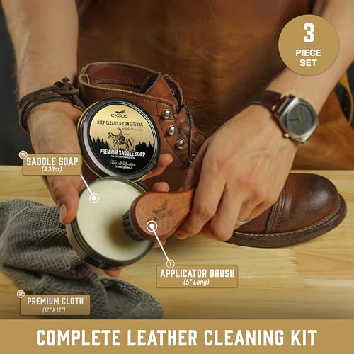 Saddle Soap for Leather – 3-Piece Saddle Soap Kit for Leather Cleaning, Boots, Tack, and Saddles – Includes Applicator and Cloth – Leather Soap and Conditioner for Leather Boots and Tack Care