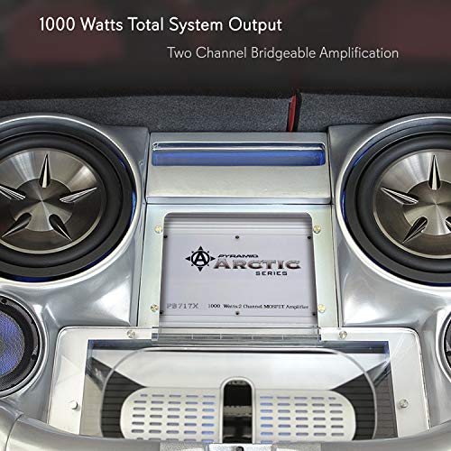 Pyramid 2 Channel Car Stereo Amplifier – 1000W Dual Channel Bridgeable High Power MOSFET Audio Sound Auto Small Speaker Amp Box w/ Crossover, Variable Gain Control, RCA IN/OUT, LED Indicators PB717X