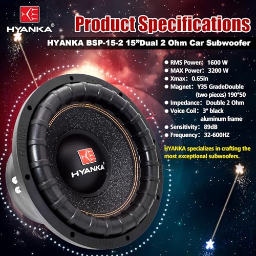 Be the first to review “H YANKA BSP-15-2 15 Inch Subwoofer – 3200W Max Power, 1600W RMS, 3″ Dual Voice Coil, 2 Ohm, Car Audio Subwoofer, Black Aluminum Basket, Paper Cone, Deep Bass for Cars”