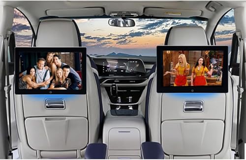 【Touch Screen&Easy Install】4K crystal clear pictures and smooth video.Easy installation for headrest monitor for car,applicable to most vehicle.(Mounting kits and cig-chargers all included in the package)When using a Bluetooth headset or its speaker, please make sure that the FM is turned off