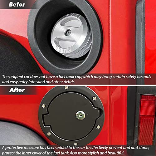 【Application】This Gas Cap Fuel Filler Door Cover fits for 2007 2008 2009 2010 2011 2012 2013 2014 2015 2016 2017 2018 Jeep Wrangler JK Rubicon Sahara & Unlimited accessories (2 door & 4 door).
