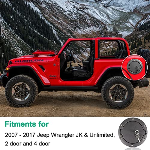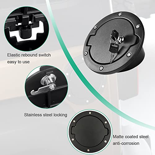 Fuel Filler Door Locking Gas Tank Cap Cover Compatible with 2007-2018 Jeep Wrangler JK JKU Sport Rubicon Sahara Unlimited