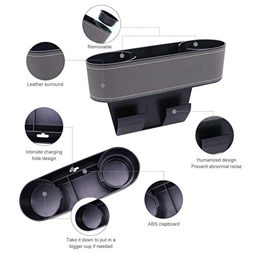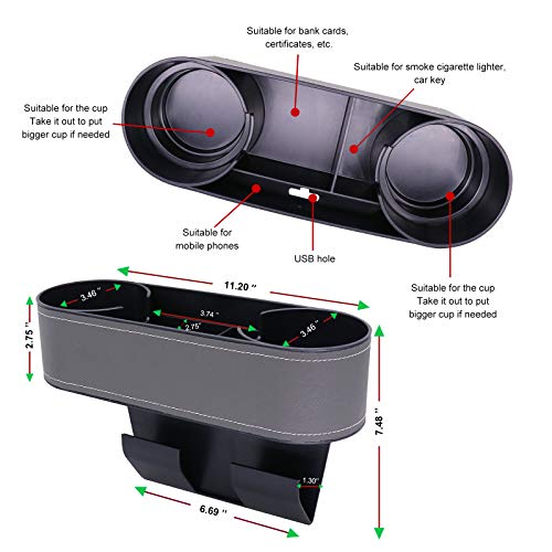 Car Seat Organizer Cup Drink Holders,Multifunctional Gap Filler Storage Box,Insert Organization Helps Reduce Distracted Driving&Holds Phone Mount Mug Bottle Cellphones Coasters Wallet Cards (Gray)