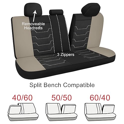 CAROMOP Breathable Car Seat Covers Full Seats,3D Air Mesh Cloth Seat Covers for Cars, Split Bench Compatible Car Interior Covers, Universal Fit Most Car Sedan Truck SUV(Black/Beige)