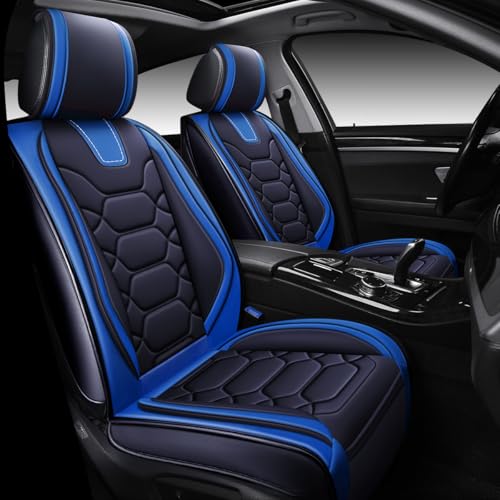 OASIS AUTO Car Seat Covers Premium Waterproof Faux Leather Cushion Universal Accessories Fit SUV Truck Sedan Automotive Vehicle Auto Interior Protector Front Pair (OS-004 Black&Blue)
