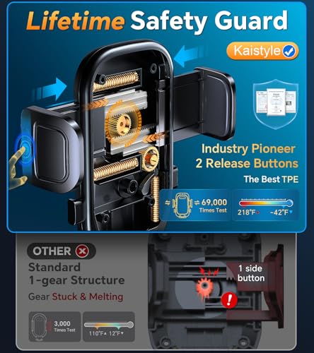 Kaistyle Best Car Phone Holder Mount【Military-Grade Suction】 Cell Phone Holders for Your Car Dash Mounted Holders【Stable Clamp Arm】 Phone Mount for Truck Stand Car Mount for iPhone Samsung All Phones