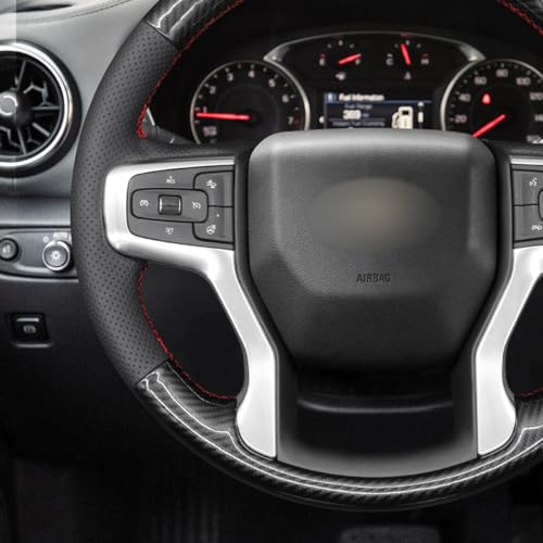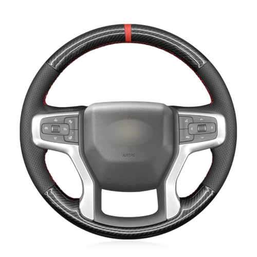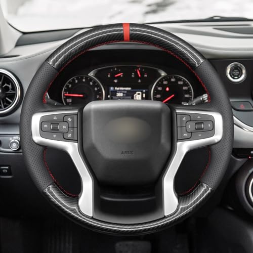 MEWANT DIY Black Genuine Leather PU Carbon Fiber Steering Wheel Cover for Chevy Blazer Silverado 1500 2500 Suburban