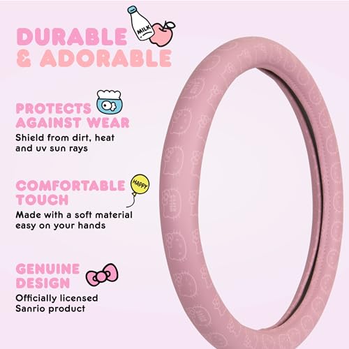 Sanrio Hello Kitty Pink Car Steering Wheel Cover, Universal Fit Cute Car Accessories for Women Stylish Decor Gifts Hello Kitty Accessories – Fits Standard Wheels 14.5″-15″