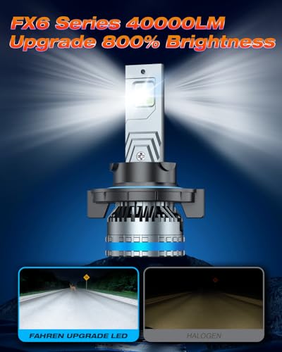 800% Brighter Update: Upgrade your night driving experience with FX6 9008 bulbs that deliver 800% more brightness than standard bulbs. Producing 40,000 lumens and 120W per pair, they offer 6500K cool white light for superior visibility and enhanced safety.