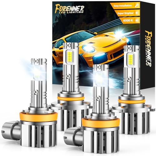 forenner H11 9005 LED Light Bulbs Combo, 120W Super Brightness 1:1 Size Easy Installation H11 9005 Driving Light Bulb, 10-Year Life with Speedy Cooling Fan, IP68 Waterproof, Pack of 4