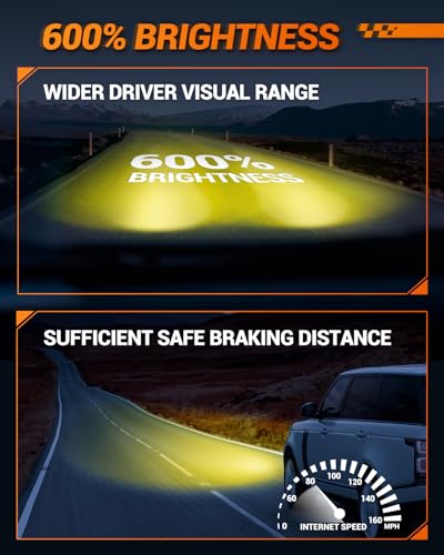 10000LM Brightness: 3000K golden yellow Newest h11 led bulb yellow 10000LM, 30W 5.0 upgrade chips, 600% brighter than stock bulbs. Effortlessly conquering any weather conditions like rainy, foggy, or snowy