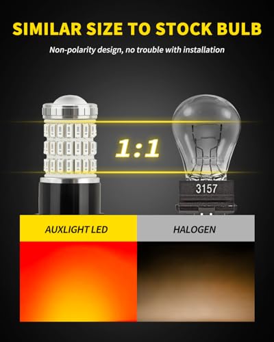 AUXLIGHT 3157 3156 3057 4157 3157K LED Bulbs Brilliant Red, Ultra Bright 60-SMD LED Replacement for Brake/Tail Lights, Blinker Lights, Turn Signal/Parking or Running Lights (Pack of 2)