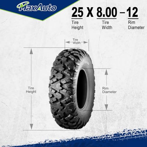 MaxAuto AT25x8-12 ATV UTV Tires, 25x8x12 All Terrain ATV Tires for All Trail Tire, 25 8 12 Mud Sand Off-Road Tire 205/80-12, 6PR Tubeless, 2 Pack