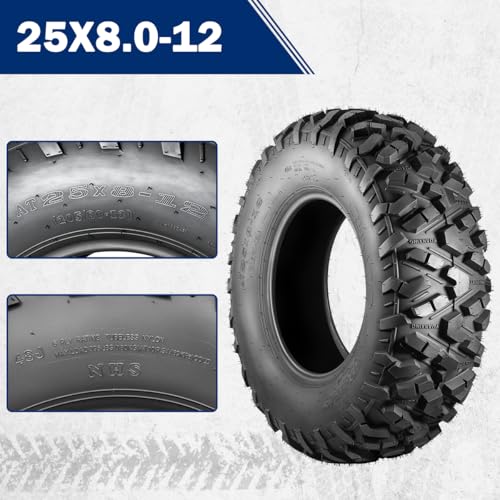 Aggressive Tread Pattern: 25x8x12 atv tires with non-directional A shaped tread pattern ensures optimal control performance. Suitable for All terrains, great performance on the trail, desert, mud, dirt, street, sand, hard rock,GNCC and snow terrains