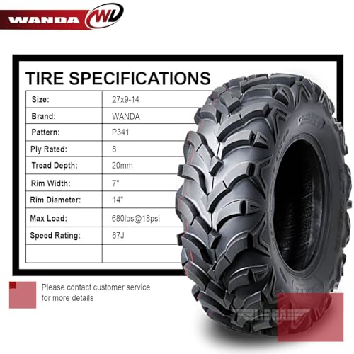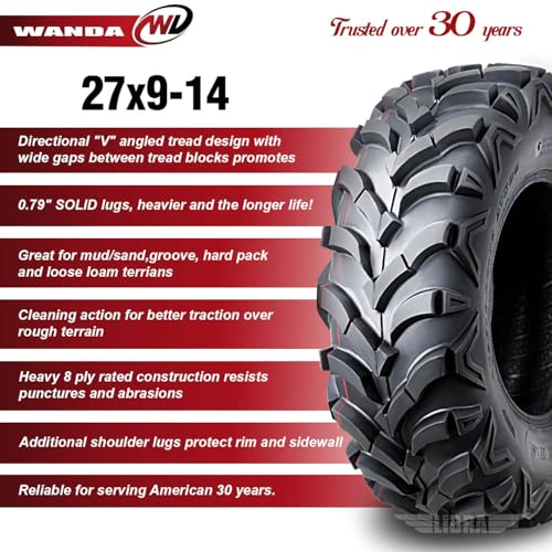 WANDA (Set 2) UTV ATV Tires 27×9-14 27x9x14 8-Ply Solid Mud 20mm tread