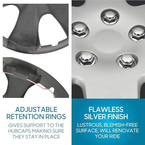ENHANCE YOUR RIDE – Transform your car’s appearance with sleek, stylish hubcaps that are as easy to install as they are to admire. Save time and money with our snap-on hubcaps that provide a premium look and performance without the extra cost.