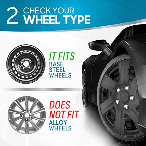 ENHANCE YOUR RIDE – Transform your car’s appearance with sleek, stylish hubcaps that are as easy to install as they are to admire. Save time and money with our snap-on hubcaps that provide a premium look and performance without the extra cost.