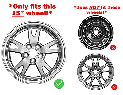 WARNING: Only fits 5 split spoke 15” aluminum wheel displayed in photo links – Please click on the photos to view the wheel