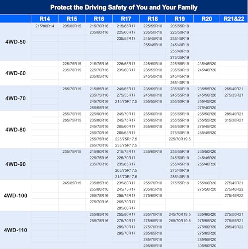 【Sturdy and Convenient Storage】: Each set of 4WD tire chains comes in a tough, canvas bag, making it easy to store in your vehicle for emergencies, while ensuring the chains are protected and ready for use.