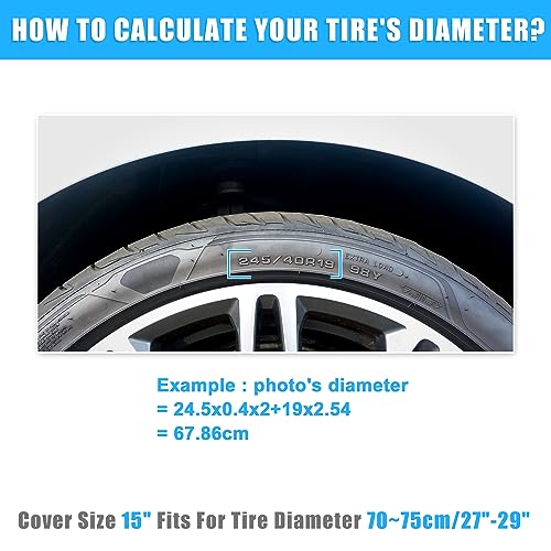 Packing Includes: 1 pcs Tire Covers. Note: Before purchasing the product, please measure the tire diameter to see if it fits the size of the tire cover.