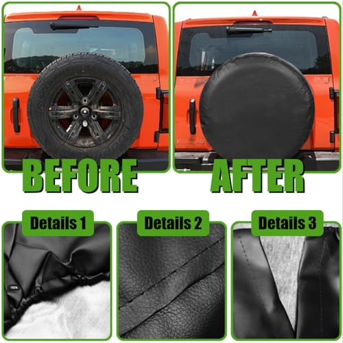 Weatherproof Protection: The spare tire cover will protect your spare tire from sun damage,rain, dirt, rust, corrosion bad weather. Greatly keep your spare tire clean, just like new