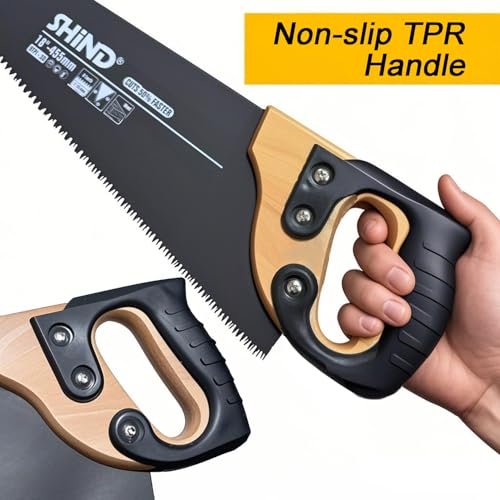 SHIND 18-Inch Professional Hand Saw with High Carbon Steel Blade, Ergonomic Non-Slip Handle for Woodworking, Cutting Wood, Plastic, and Drywall – Durable & Lightweight for Precision Cuts