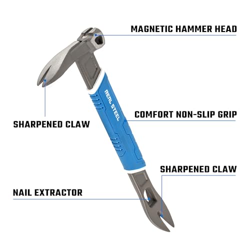 REAL STEEL 10″ Nail Puller with Magnetic Hammer Head,Cats Paw Pry Bar, Crowbar for Nail Removal Prying Baseboard 0692