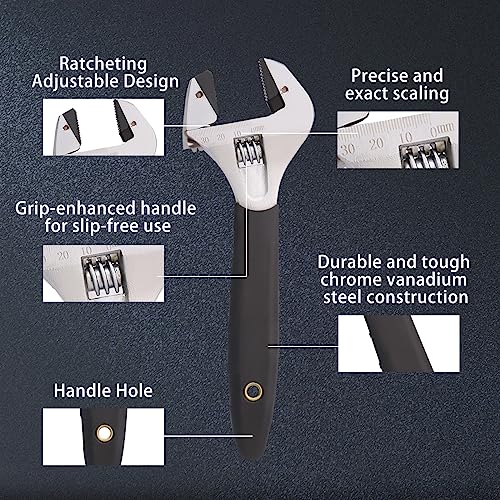 10 Inch Ratcheting Adjustable Wrench Crescent Wrench Scale Marked Pipe Forceps with Black Oxide Finish Wide Open Spanner Anti-slip Grips Wrench
