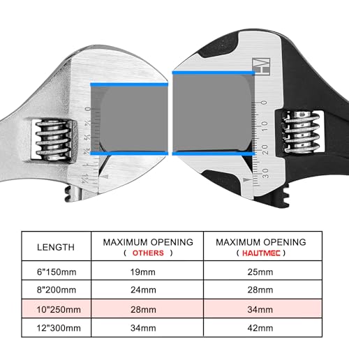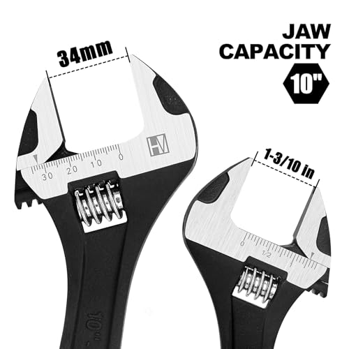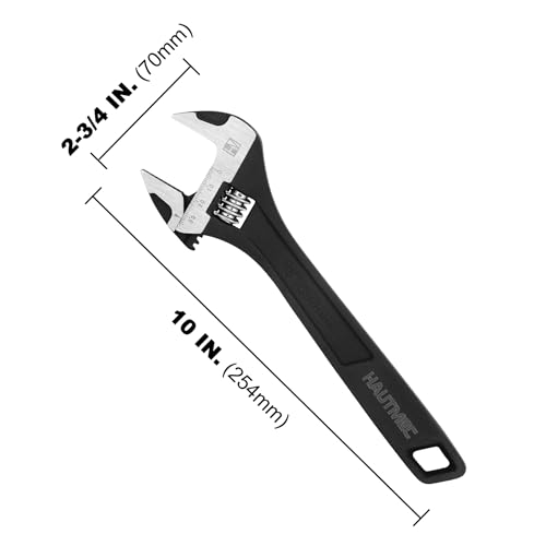 HAUTMEC 10 inch Adjustable Wrench Extra Wide Jaw Black Finish Adjustable Wrenches Drop-Forged CR-V Steel Metric & SAE Scales for Home Garage Workshop DIY